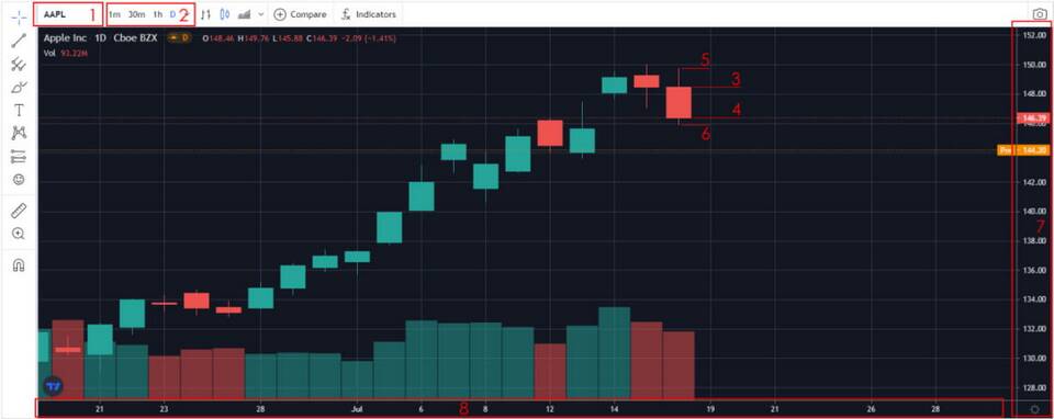 - Обратите внимание на цвет свечи (рост/падение)
